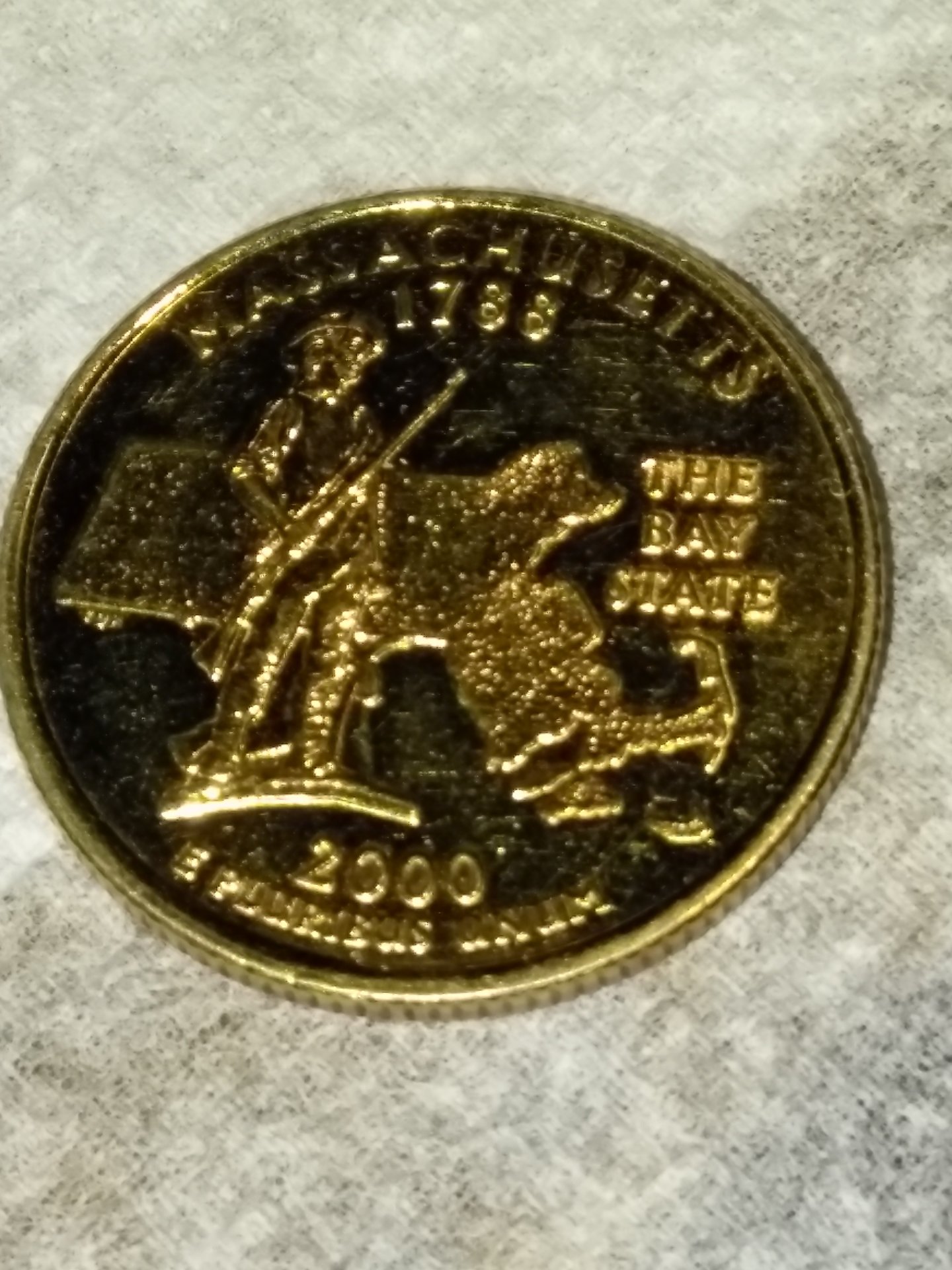 2000 Massachusetts Quarter With 2 Different Clad Layers And Copper